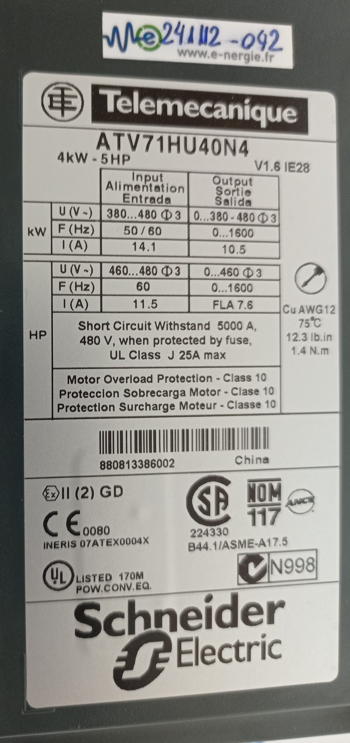 Ajouter au panierAperçu rapideTélémecanique, Tous, VariateursAltivar 5 ATV452075 serie 45 0.75kW 1HP révisé