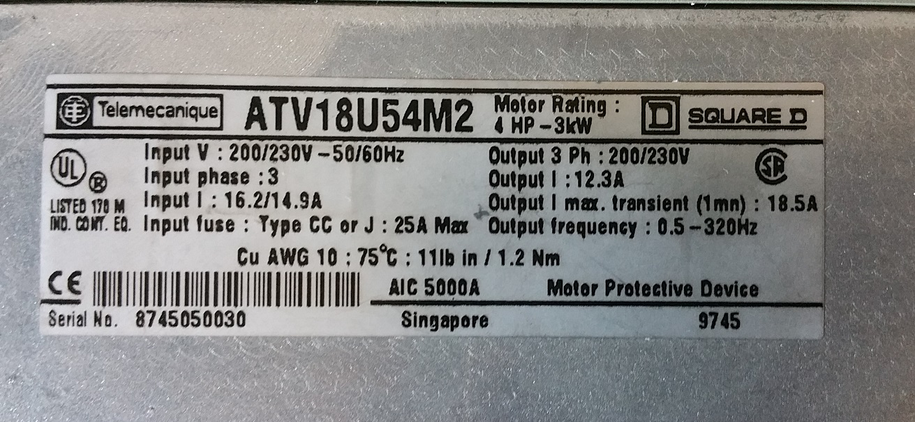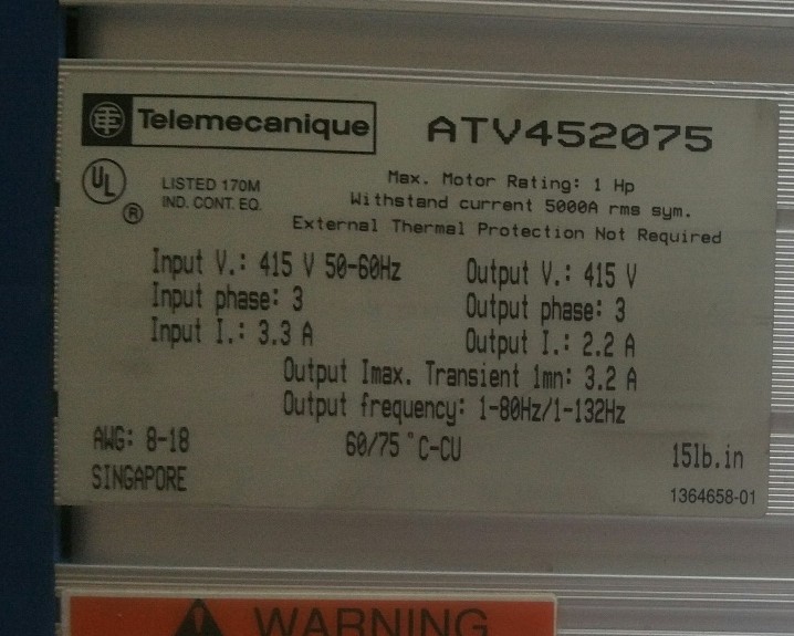 Ajouter au panierAperçu rapideTélémecanique, Tous, VariateursAltivar 5 ATV452075 serie 45 0.75kW 1HP révisé