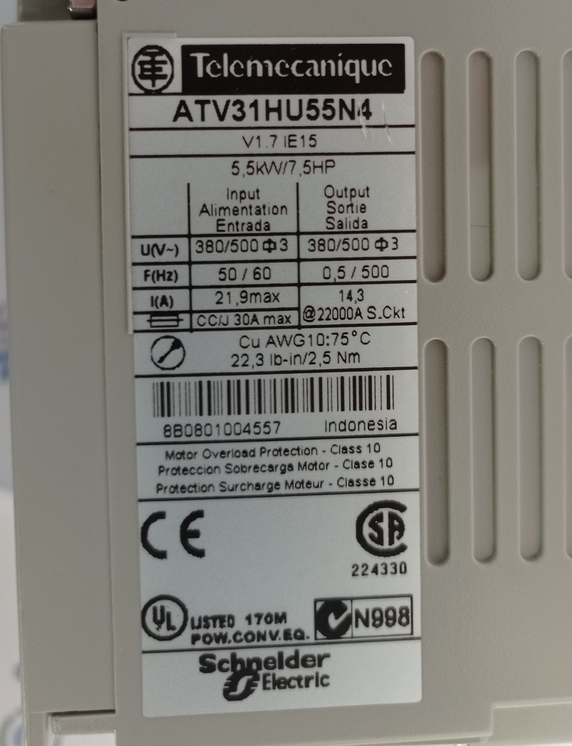 Ajouter au panierAperçu rapideTélémecanique, Tous, VariateursATV452D37N Telemecanique 37 Kw 50 HP ATV452