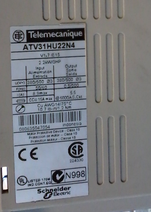 Variateur de fréquence / vitesse Schneider Altivar ATV31HU22N4 2.2kW 3HP