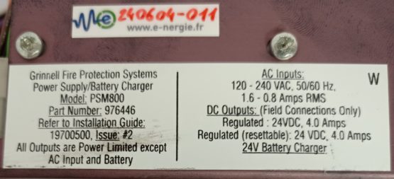 Alimentation pour centrale de détection 220VAC – 24VDC – Grinnell PSM800 PSM-800 en Occasion Reconditionnée.