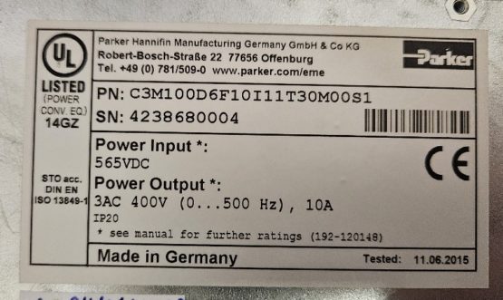 Variateur Parker C3M100D6F10I11T30M00S1